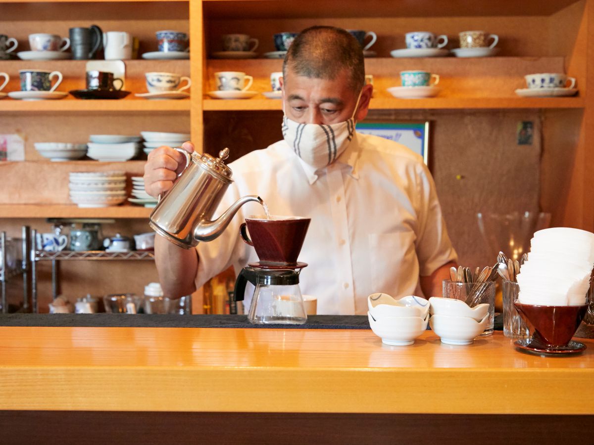 JR鎌倉駅西口から徒歩約20秒。駅前のロータリーに面したビルの2階にある「自家焙煎珈琲 ヲガタ」へ。学生時代の珈琲店でのアルバイトが、珈琲に心酔するきっかけとなったマスターの緒形有紀さん。以来、自家焙煎とハンドドリップにこだわること四半世紀以上。そんなマスターの至極の一杯を求めて、毎日多くの人が訪れます。