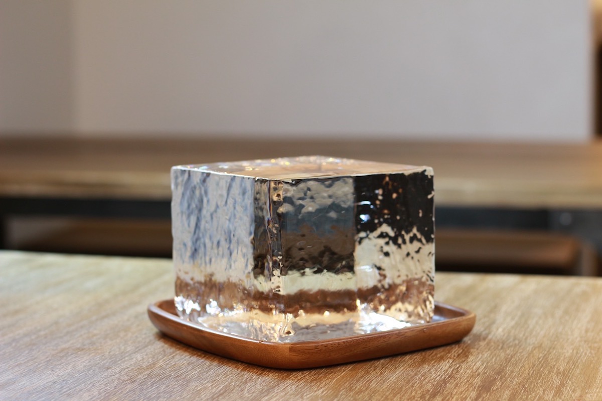 「MELT BOWL」で使用する氷は、「明壽庵」と同じ東京都北区にて大正13年に創業した東京老舗純氷メーカー「小野田商店」の「超純氷」。徹底的に不純物を除いた逆浸透膜ろ過水を使用し、100年以上続く伝統のアイス缶製法で作られています。原料水中の空気をかき混ぜながら、不純物が多い部分の水を特殊な製法で処理した純水と交換し完全に凍結。60時間以上の時間をかけて凍らせることで、口溶けのよいふわふわの氷を作ることができるそうです。