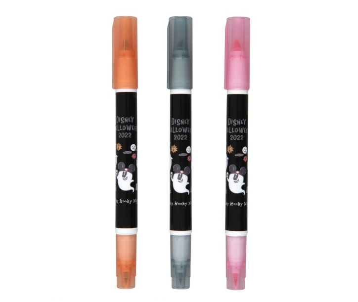 太さが2タイプのカラーペン。インクの色はオレンジ、グレー、ピンクの3色。