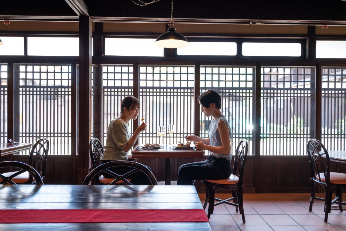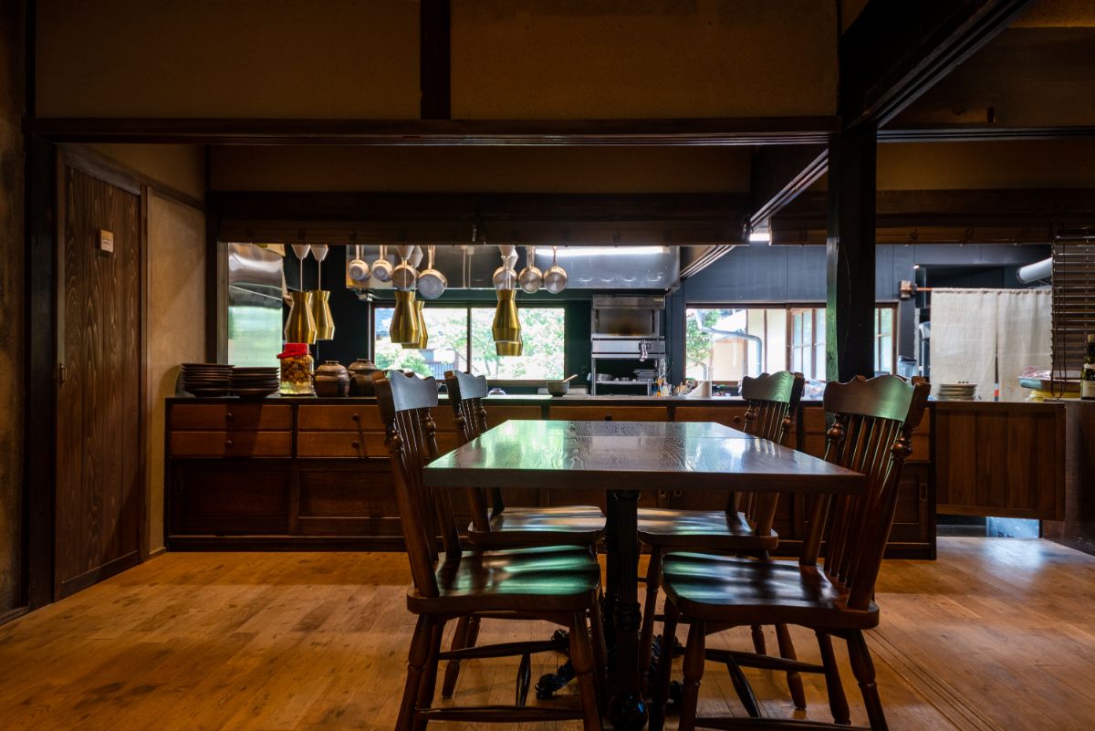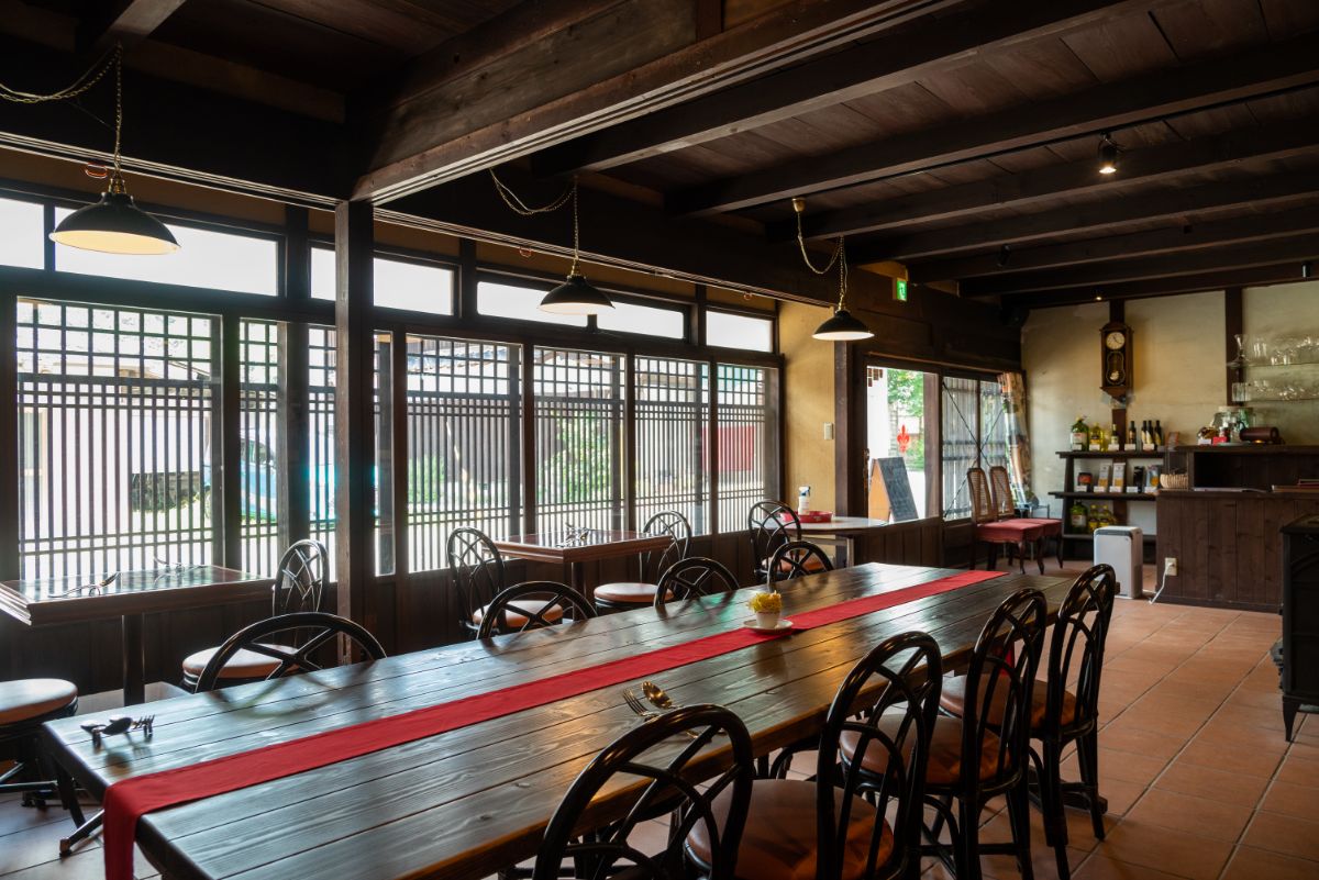 重要伝統的建造物群保存地区の中でも特別家屋の指定を受けた、築150年余の古民家をリノベーション。イタリア・トスカーナ地方の田舎町をイメージした「Trattoria al Ragu(トラットリア アル ラグー)」の店内は、和の外観とはガラリと趣を変えた洋の雰囲気。冬になると薪ストーブの温もりも加わって、初めて来たのにどこか懐かしい居心地のよさを感じます。