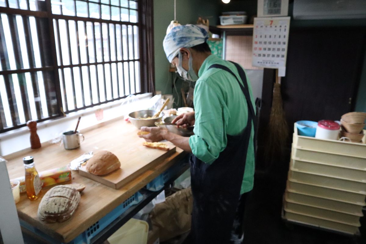 2020年にオープンした「なりとぱん」は、古民家をリノベーションした店が並ぶ福住地区にあります。元々、大阪府の上本町で「Cocoro」というベーカリーを営んでいた伊勢さんご夫妻が、福住地区にある「マグナムコーヒー」にパンの配達をしていたことが縁で、2019年に移住。ご主人の伊勢成人さんの名前から「なりとぱん」と名付けました。