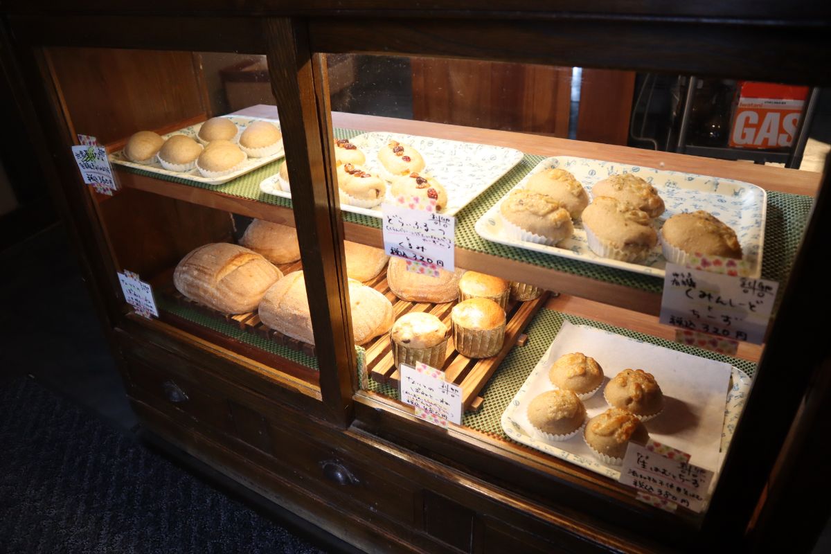 レトロな棚には、手間暇かけた生地のおいしさが際立つ食パンやカンパーニュなど15~20種類、どれもおいしそうに並びます。週末ともなれば、京阪神からわざわざこの店を目指して来る人も多いそう。