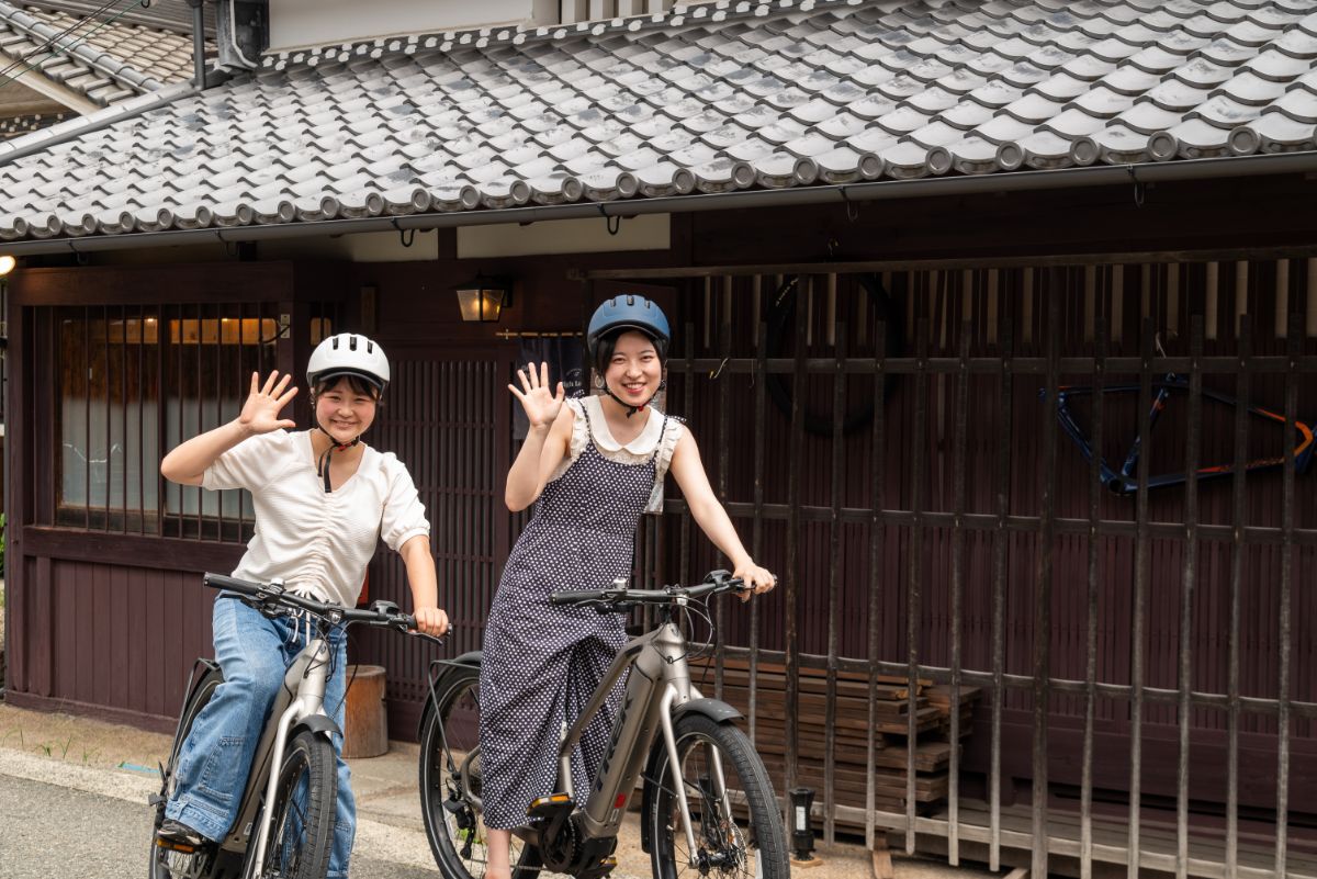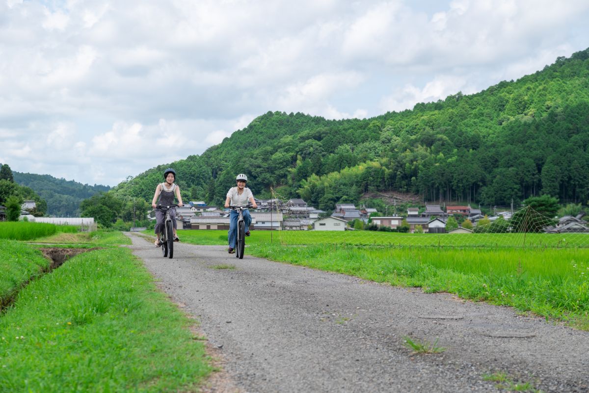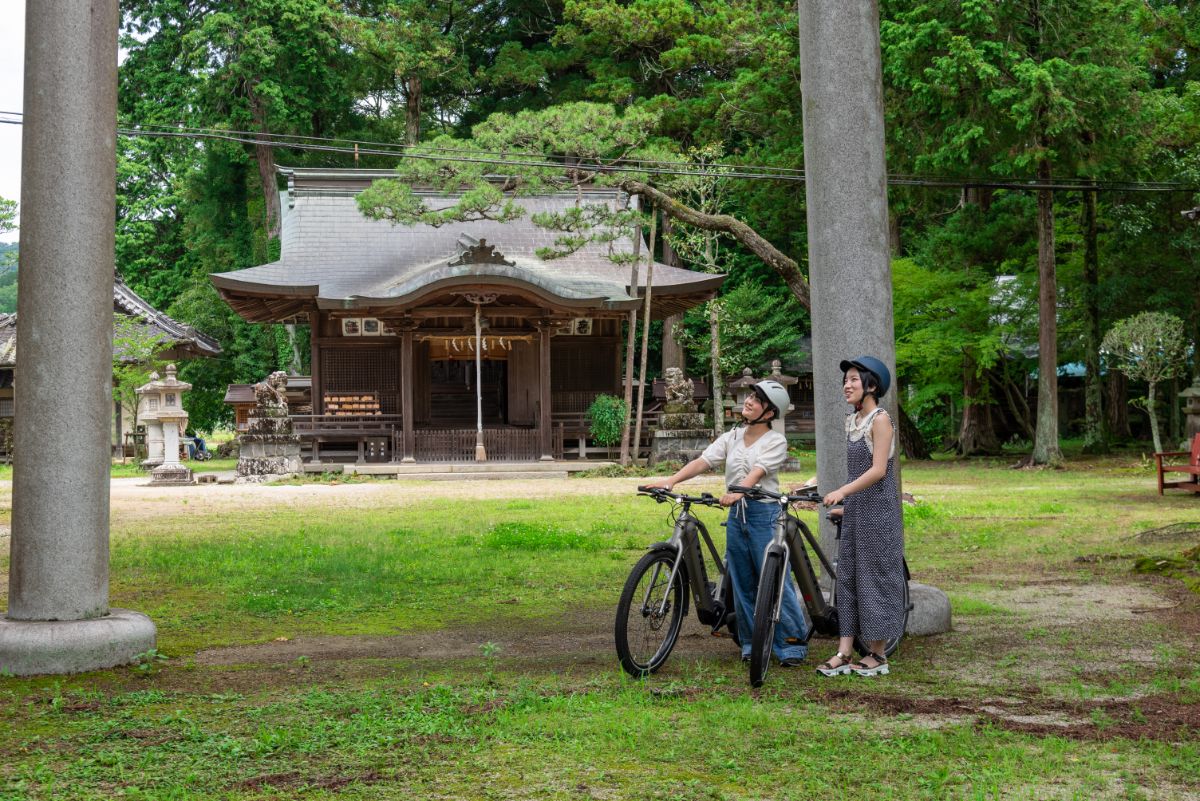 「-丹探-TAMSAKU」は、爽やかな風を感じながら、江戸時代の宿場町と農村地域を巡るサイクルツアー。主催の「自転車工房ハイランダー」の村上さんが案内してくれます。約1時間30分かけて、宿場の町並みや田園風景、歴史ある神社などを巡り、福住地区の魅力を肌で体感。E-BIKE電動アシスト自転車が用意されているので、体力に自信がないという人も安心です。
