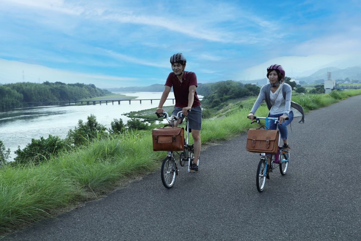 「うだつの町並み」に軒を連ねる商家の商人は、吉野川の舟運を利用して藍の染料を運び、商いをしていたそう。その河川敷は、車の通りがなく、見晴らしもよく、自転車で疾走するには最高のロケーション。奥には、この地方独特の欄干のない潜水橋があります。潜水橋を渡ると対岸のJR穴吹駅に到着です。