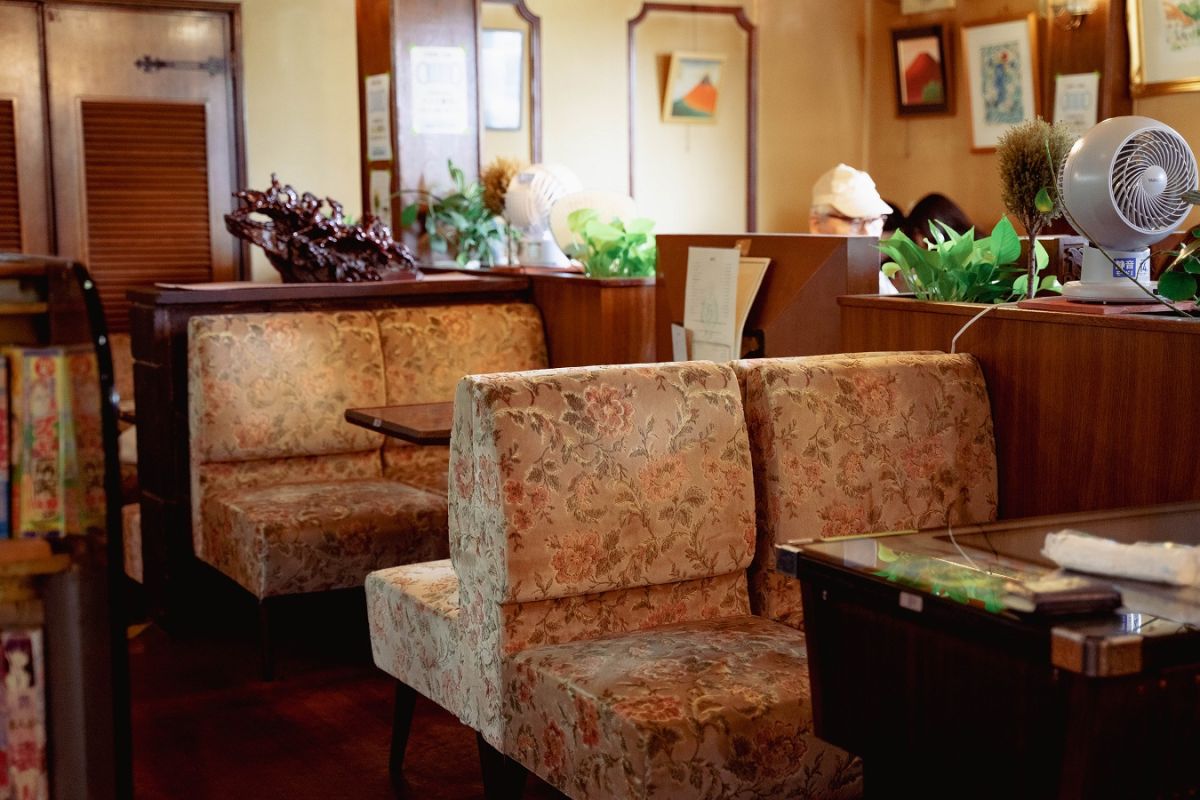 店内は昭和レトロそのもの! ふかふかのソファや重厚な置物、壁や天井の渋い色合い、きらびやかな照明など、一つ一つ見ているだけで楽しいです。