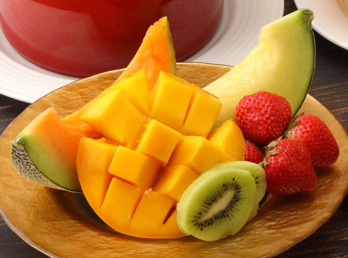 フルフルールコースは、旬のフルーツとスイーツが好きなだけ楽しめる看板メニュー。ウェルカムプレート、おかわり自由のフルーツとスイーツのほか、食事メニューやドリンクがセットになったコースです。旬のフルーツを思う存分堪能できるのがうれしいですね。