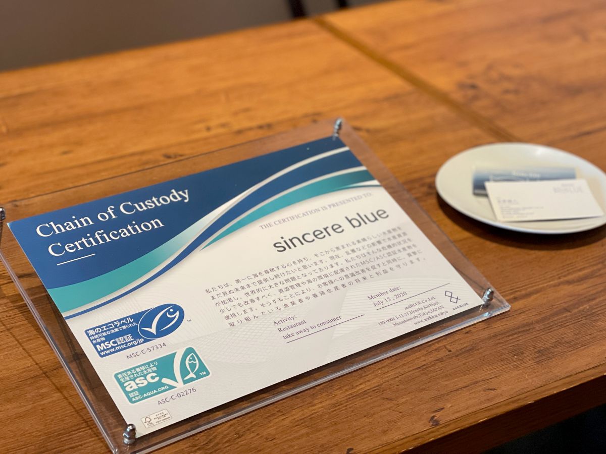 「Sincere BLUE」では、ASC・MSC認証魚が正しく流通・加工管理されていることを担保するCoC認証も取得しています。