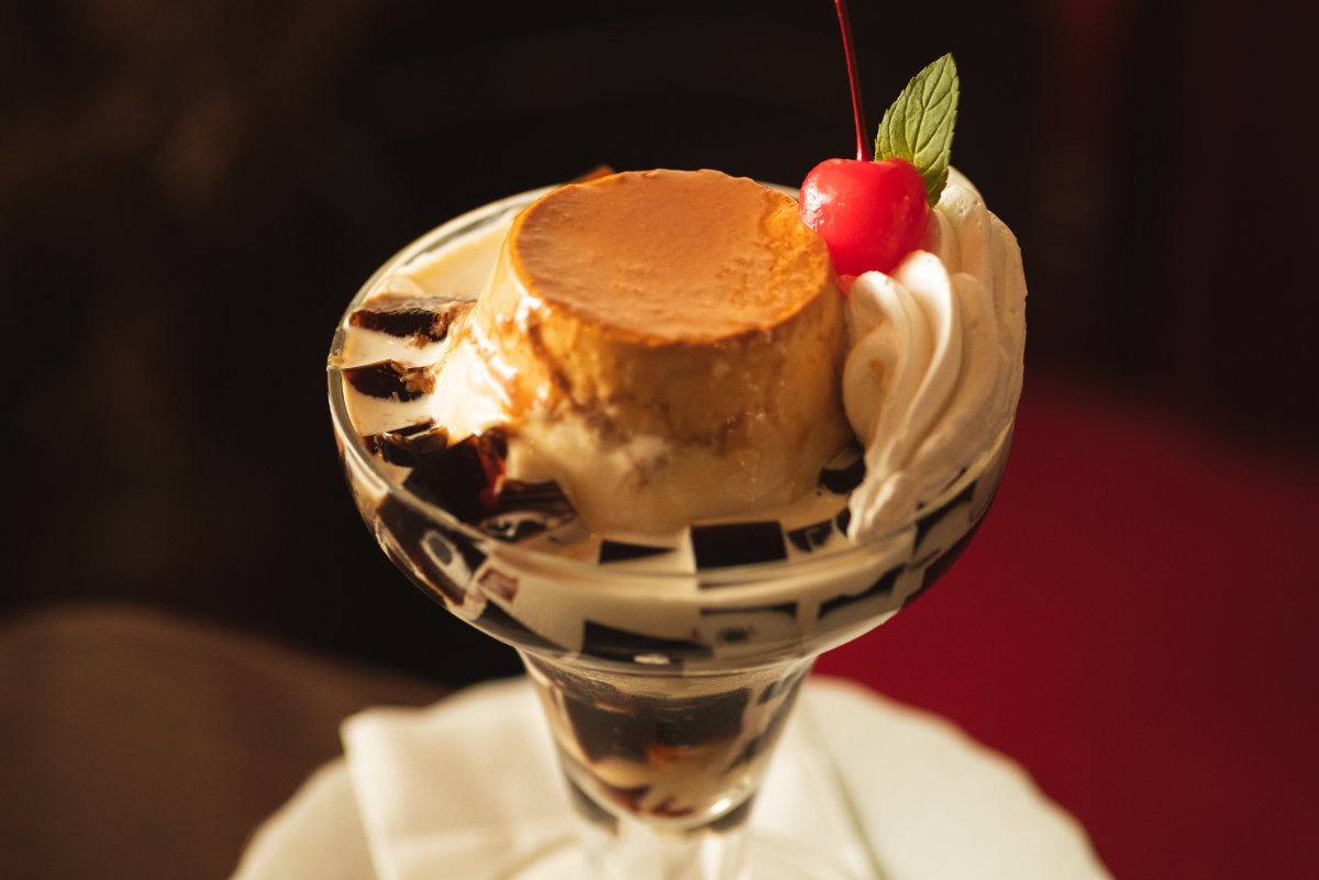 自家製の水出し珈琲を使ったコーヒーゼリーに、昔ながらのレトロなプリンも食べたい!そんな希望を叶えてくれるのが「プリンカフェゼリーパフェ」です。