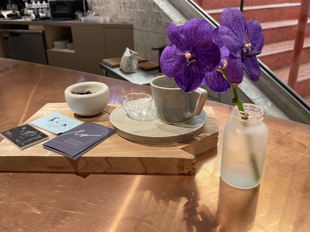 「カフェラテ(milk)」のエスプレッソに使われているコーヒー豆は、中目黒のスペシャルティコーヒー豆専門店「カフェ・ファソン」の代表が、「Tamitu」のハーバルハニーに合うようブレンドしたもの。何十種類も試し、ひとつずつ味見してたどり着いたというこだわりの一杯です。