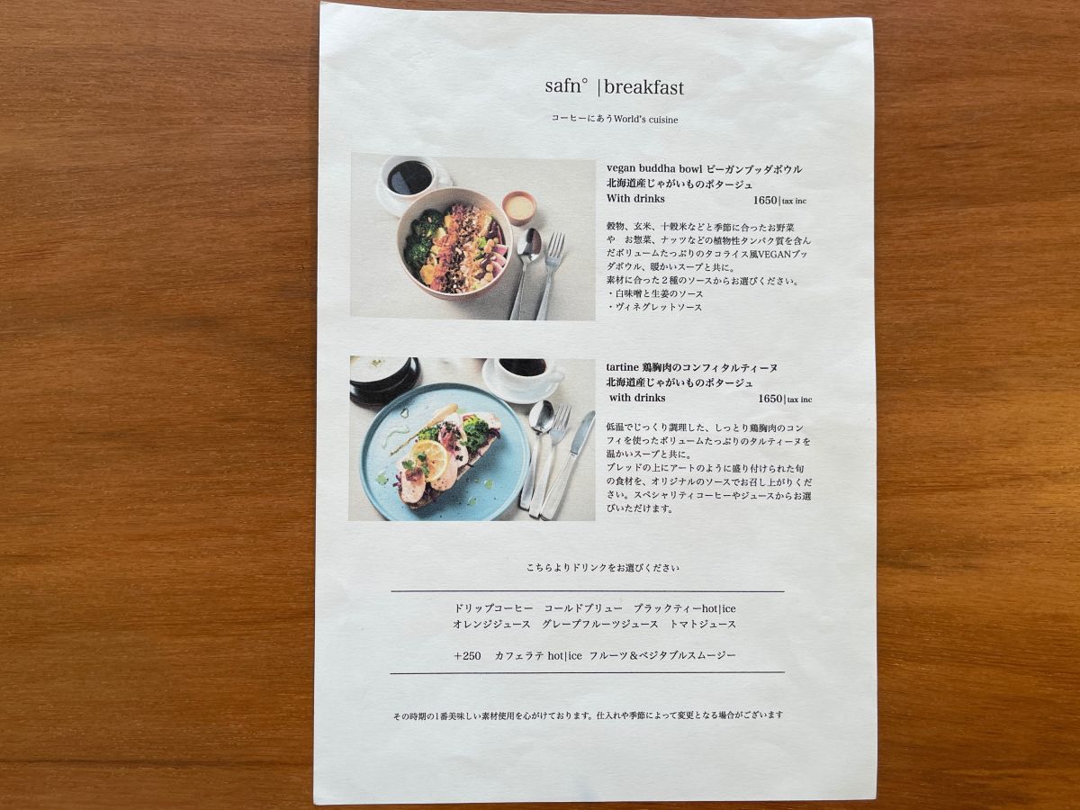 「ヴィーガン ブッダボウル」と「鳥胸肉のコンフィタルティーヌ」の2種類で、どちらも季節のスープとドリンクが付いて、1650円です。