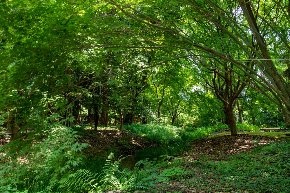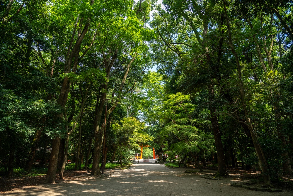 境内を覆うように広がるのが、太古から京都の地に存在する原生林、糺の森(ただすのもり)です。その昔は150万坪にもおよぶ広大な面積だったそうで、現在も東京ドームの約3倍を誇る12万4000平方メートルの広さとなっています。