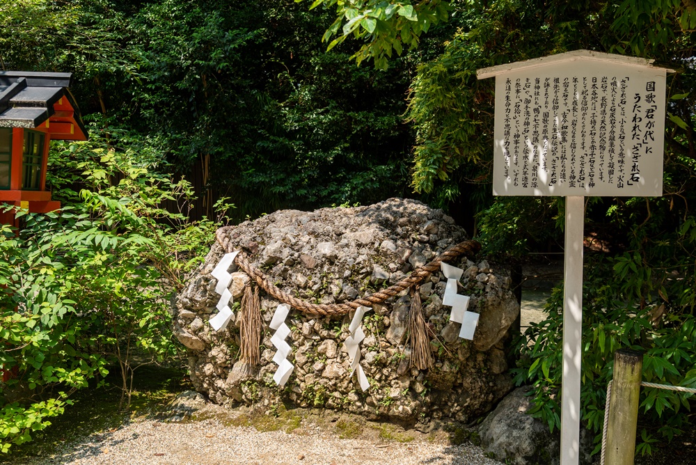 そうです、国家「君が代」の歌詞に登場するさざれ石。年々成長し、岩になると信じられている神霊の宿る石で、『古今和歌集』でも祖先から信仰してきた石として詠まれています。
