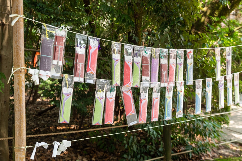 こちらは『源氏物語』の作中に登場する和歌が書かれた恋みくじ300円。男女別に引く珍しいおみくじで、それぞれでデザインが異なります。大切な人と訪れた記念に引いてみるのも良さそうですね。