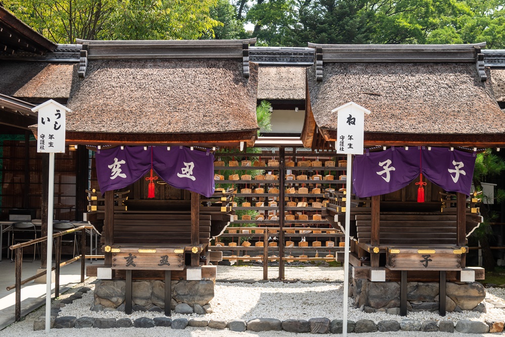 最後に参拝したのは本殿の前に位置する干支の社、言社(ことしゃ)。十二支が祭られている七つの社は、干支の守護神として有名です。自分の干支を祭る社に参拝する形式のため、家族や友人と来ても向かう先はさまざま。通常の参拝より特別感を楽しめるのが魅力です。