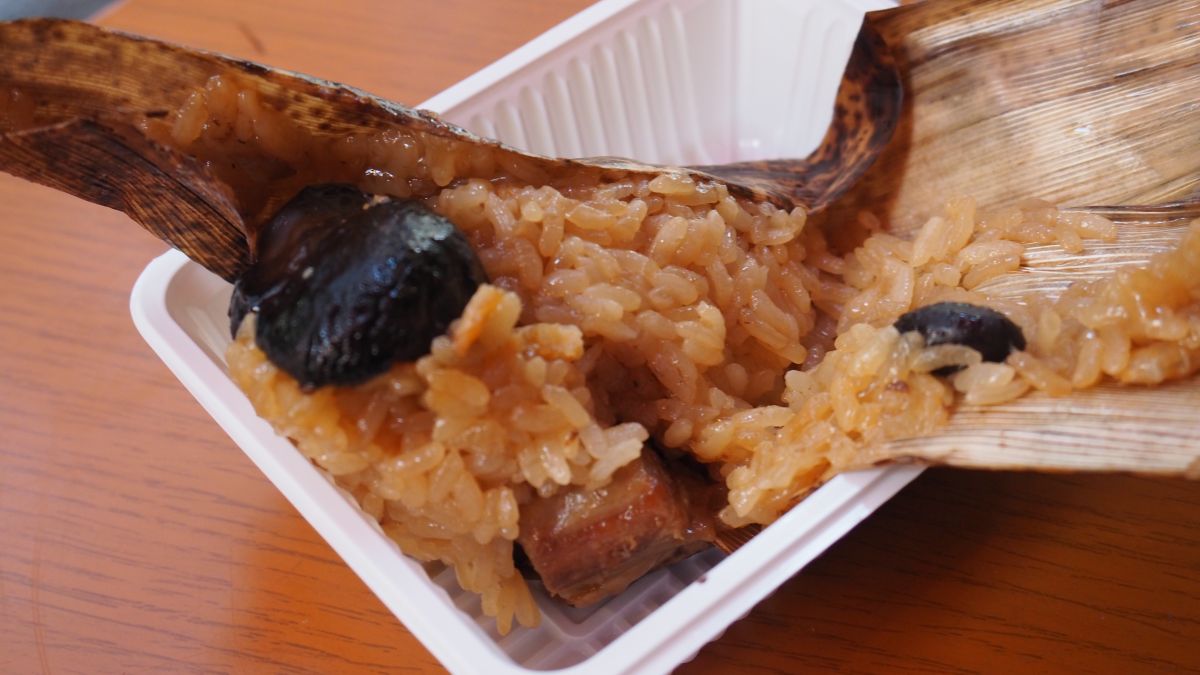 外せないのが、滋賀県信楽産の白苔もち米を使用した名物・ちまき。肉(豚)、鶏、海鮮の3種類から選ぶことができ、中でも一番人気の「肉ちまき」400円は、豚の角煮・椎茸・黒豆・干しエビを贅沢に使用し、竹の皮で包んで風味豊かに仕上げることで抜群の味わいが楽しめます。