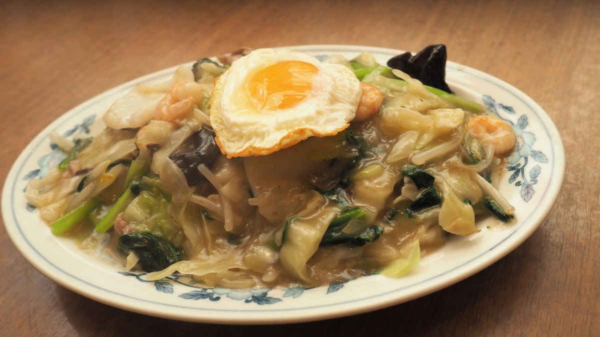 食材にこだわる「民生」では、神戸牛や明石の海鮮、たつの市の醤油など、地元食材をふんだんに使用し、本格的な広東料理を提供。今回、メインでいただいた「五目ヤキソバ」1100円は、自家製麺と豚肉、農家直送の野菜などの食材に濃厚なあんが絡み、ボリューミーかつコク深い味わいとなっています。