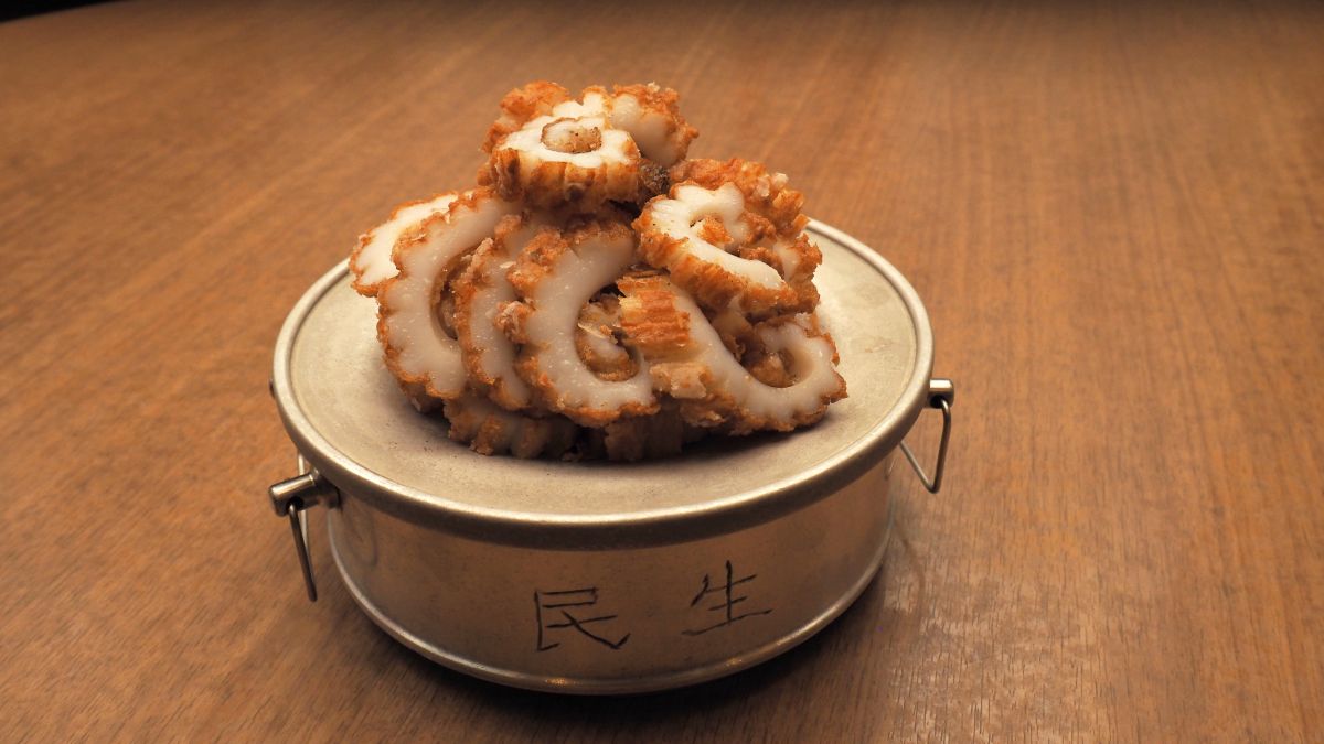 民生に来たなら必ず食べておきたいのが、「イカの天ぷら」1900円。来店客のほとんどが注文するという名物は、柔らかさと歯ごたえを併せ持った唯一無二の食感で、ほどよいしょう油の風味で、無限に食べていたくなります。
