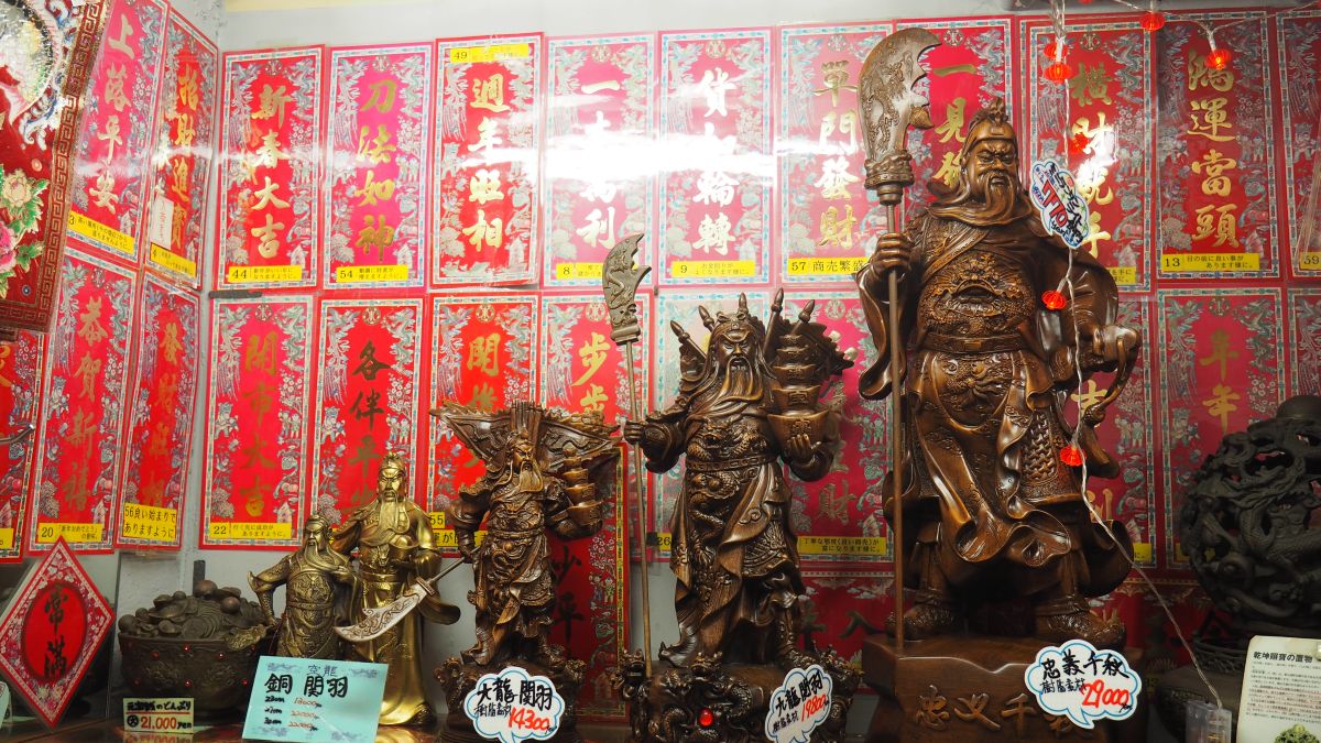 御札やステッカー類は価格もお手頃で、多めに買っておすそ分けすれば喜ばれることうけあい。壁にぶら下げてみたり、家具などに貼るだけで一気にお部屋が中華テイストに。三国志が好きな人は、お値段少し張りますが関羽の銅像も、ぜひ。