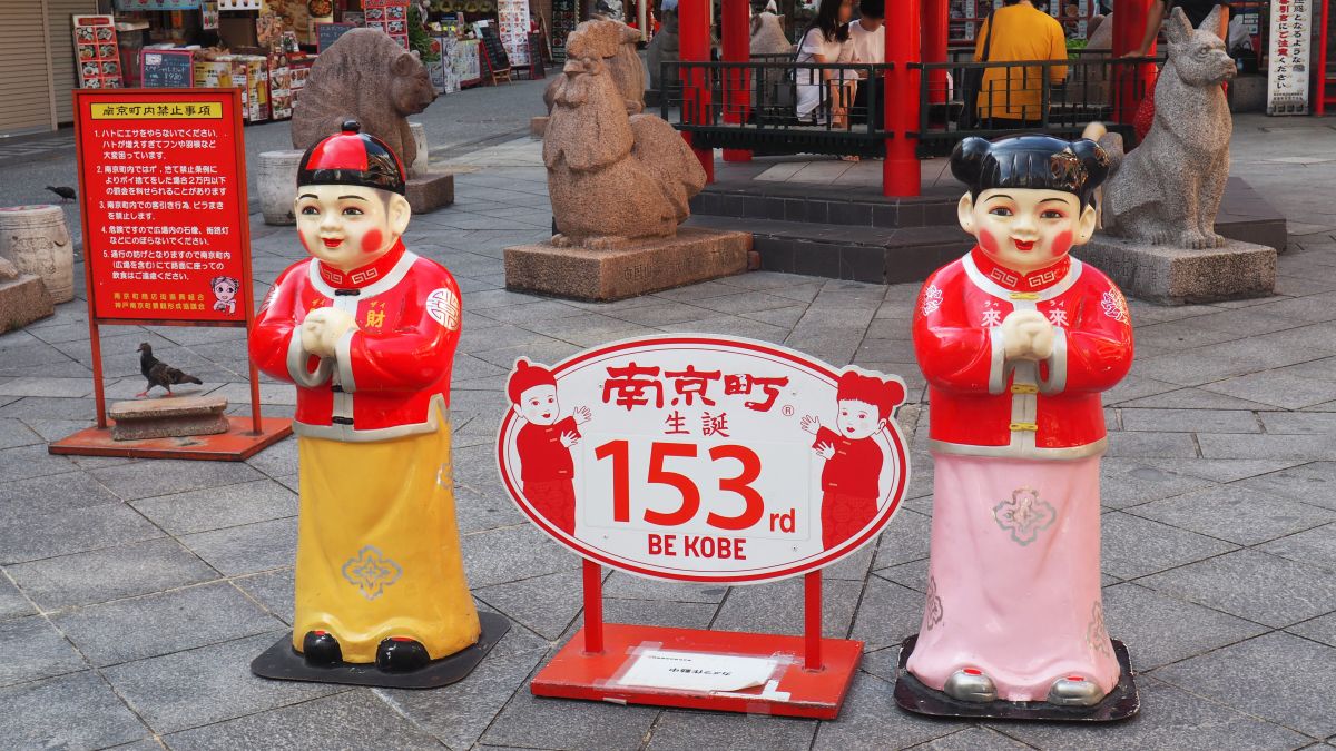南京町を歩いていると、ところどころに建てられているオブジェに目が向くはず。街中に溶け込む彼らを写真に収めて旅の思い出に持ち帰りましょう。昼間のみ飾られているこちらの小財神の人形は中国でお金の神様として崇められ、触れると幸せになれるという言い伝えがあります。