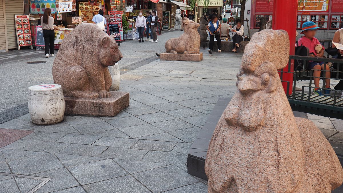 そう、南京町の十二支像は、なぜかパンダを含む十三体なのです。これは、諸説によると中国の業者に像の制作を発注したところ、なぜか猪がうまく伝わらずパンダになって納品されたものなのだとか。ちなみに中国の干支では猪が豚に置き換えられているので、そこで勘違いが生じたのかもしれませんね。今ではこのパンダもすっかり南京町の人気者になっています。