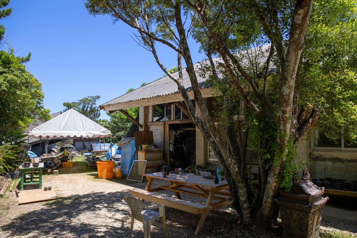 昭和49年(1974)に那覇市が薪を使った窯焼きを禁止したことで、沖縄で初めての人間国宝となった故・金城次郎(きんじょうじろう)氏が那覇市壺屋から読谷村へ窯を移しました。それがきっかけで、読谷村に多くの陶芸家が集まるようになったと言われています。