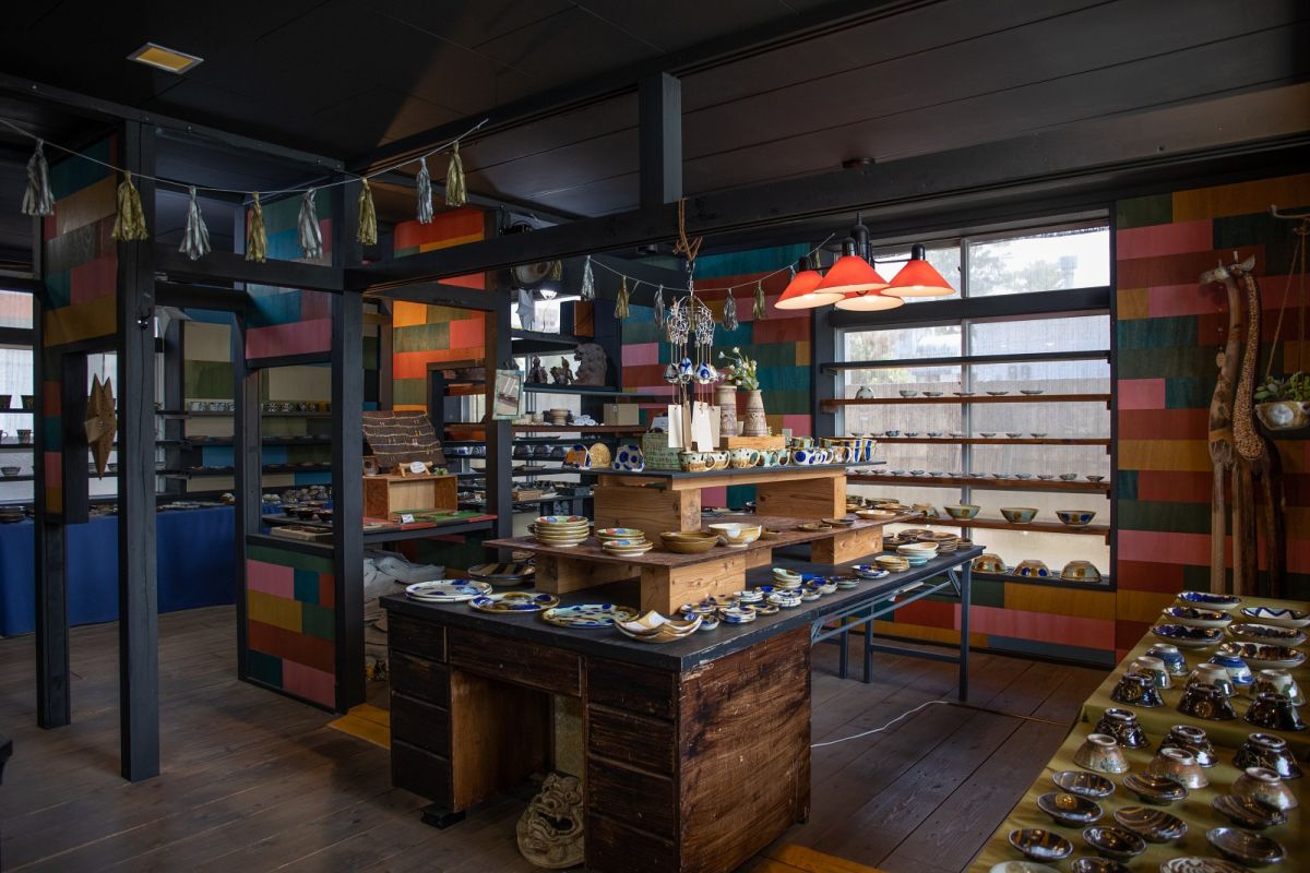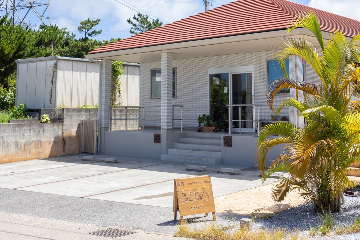 2019年2月にオープンした「楓千夢」は、親しみやすい外観が印象的。こちらのセレクトショップでは、30名ほどの作家のやちむんを扱っています。