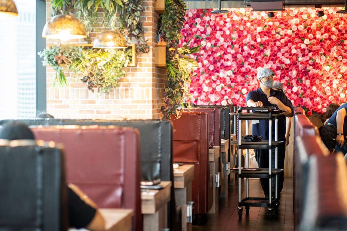 素敵なインテリアも「新馬辣+」の特長です。写真映えしそうな花の壁やチェスターフィールドのソファは、旅の思い出に華を添えてくれそう。さらに、ここ「台北信義遠百店」なら、食事をしながら望める台北101のビューもとっておきのごちそうです。