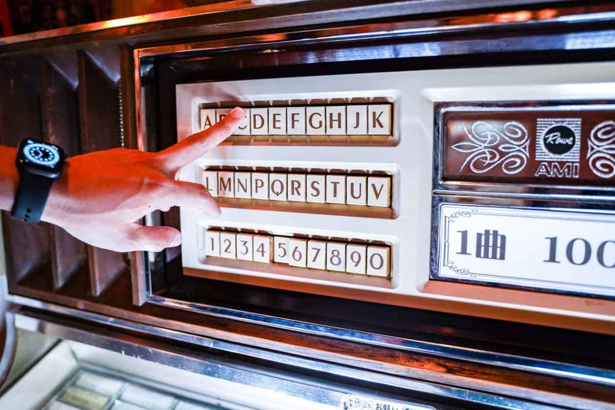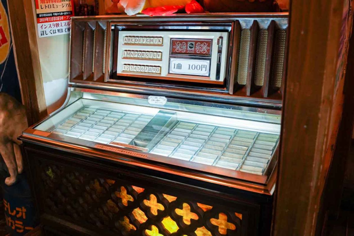 こちらは戦後から1970年代ごろまで飲食店やホテルに置かれていた、とても貴重な真空管のジュークボックス。機械の中にはたくさんのシングルレコードが収納されています。好きな曲を選び、100円を入れてボタンを押すと、レコードの演奏がスタート!重厚感のあるしっとりとしたメロディーに、なんともノスタルジーな気分になります。