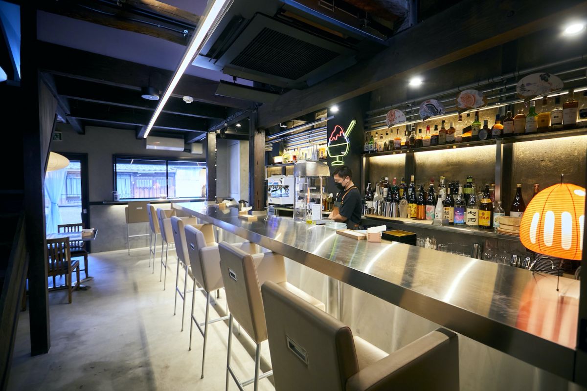 店内は、BARらしくバーカウンターがメイン。カウンター6席、テーブル4席、窓側のカウンター3席の計13席です。京都が好きで、歴史ある京都の町家でお店をやるのが夢だったオーナー。偶然に縁があった、この町家で店を立ち上げることにしたそう。