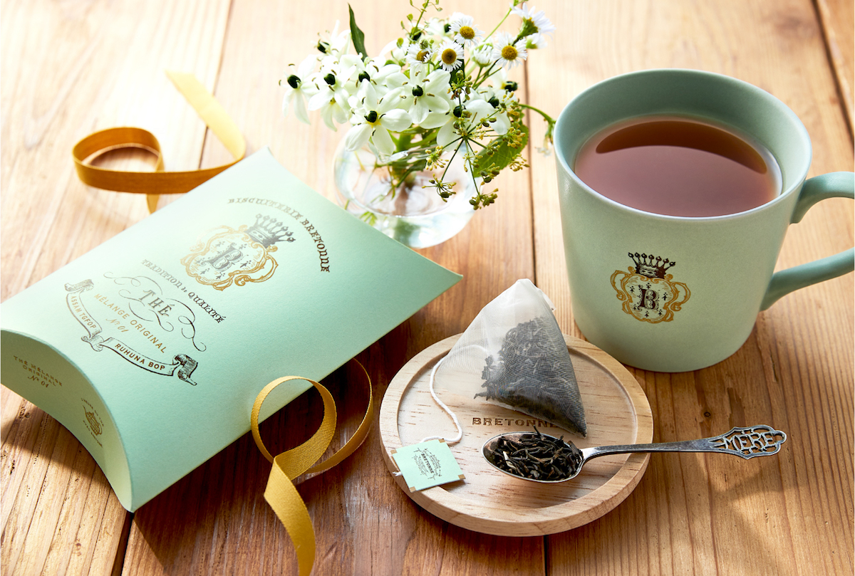 紅茶は芳醇なバターの風味や素材の味を生かしたブルトンヌの焼き菓子と引き立て合うよう、紅茶鑑定士と一緒に作り上げたオリジナルブレンド。香り高いアッサムオレンジペコーの「セカンドフラッシュ」をベースに、セイロンローグロウン(スリランカ産 低産地茶)の「ルフナ」を合わせてコクと奥行きを加えています。ストレートでは上品な香りを、ミルクティーでは柔らかく深いコクを楽しむことができるこだわりの紅茶です。