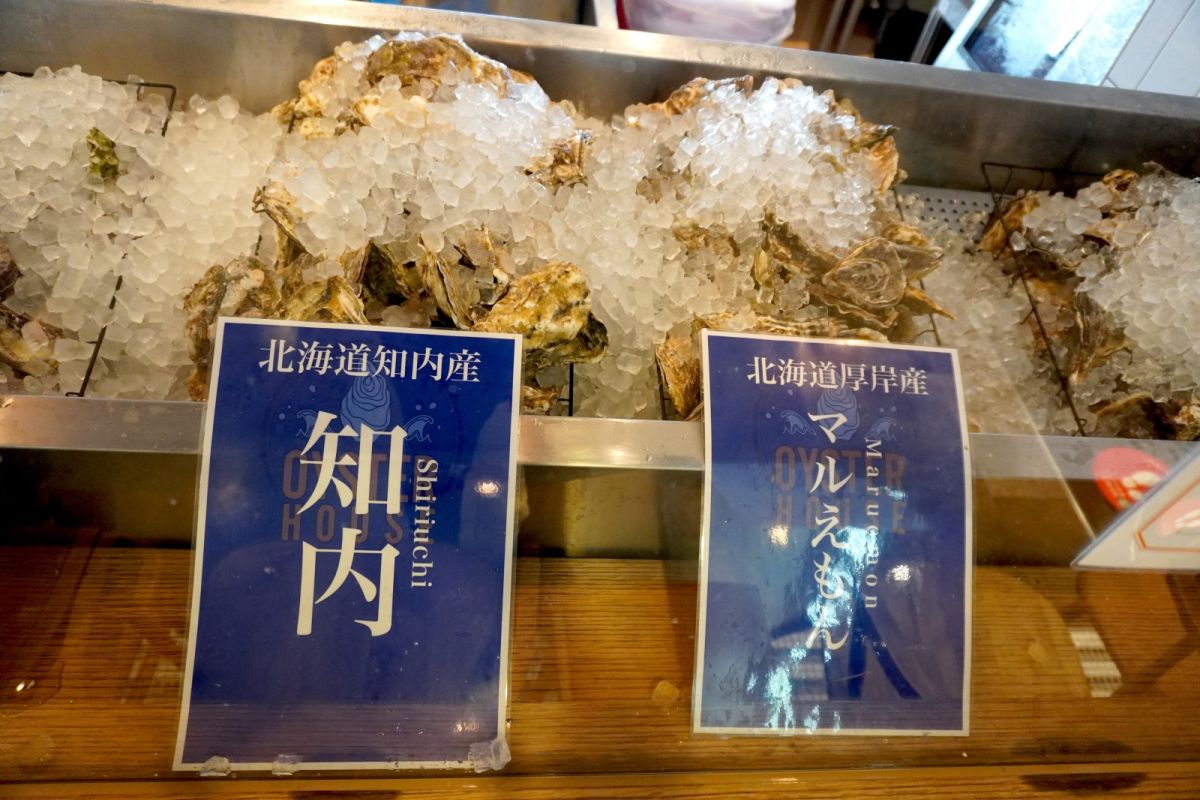 「オイスターハウスお台場」では、店の外から見える場所に、その日に提供する牡蠣が並べてあります。