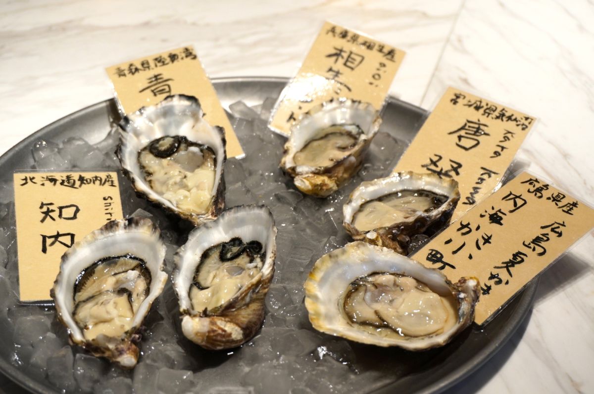 常時6〜7種入荷する本日の生牡蠣をチェック!