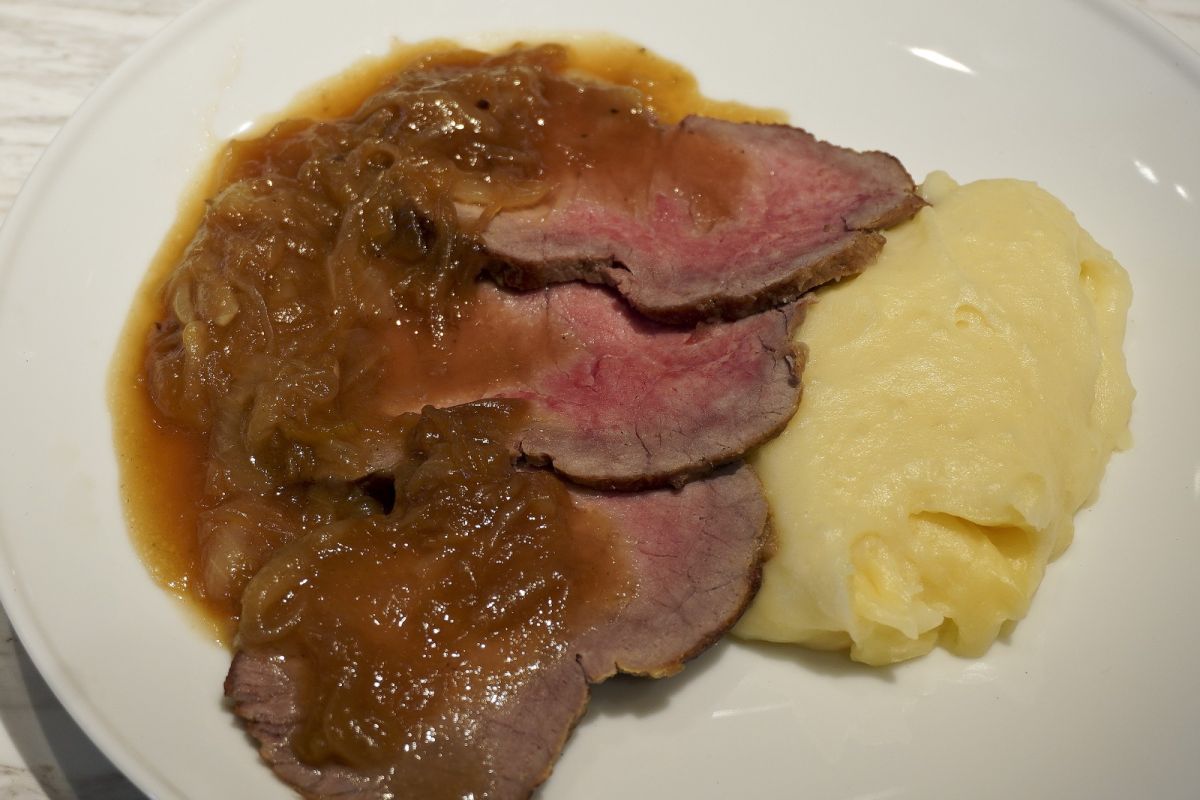 「ローストビーフ〜グレイビーソース」1650円は、オーストラリア産のサーロインをじっくりローストし、シェフ自慢のグレイビーソースで仕上げています。