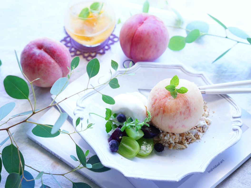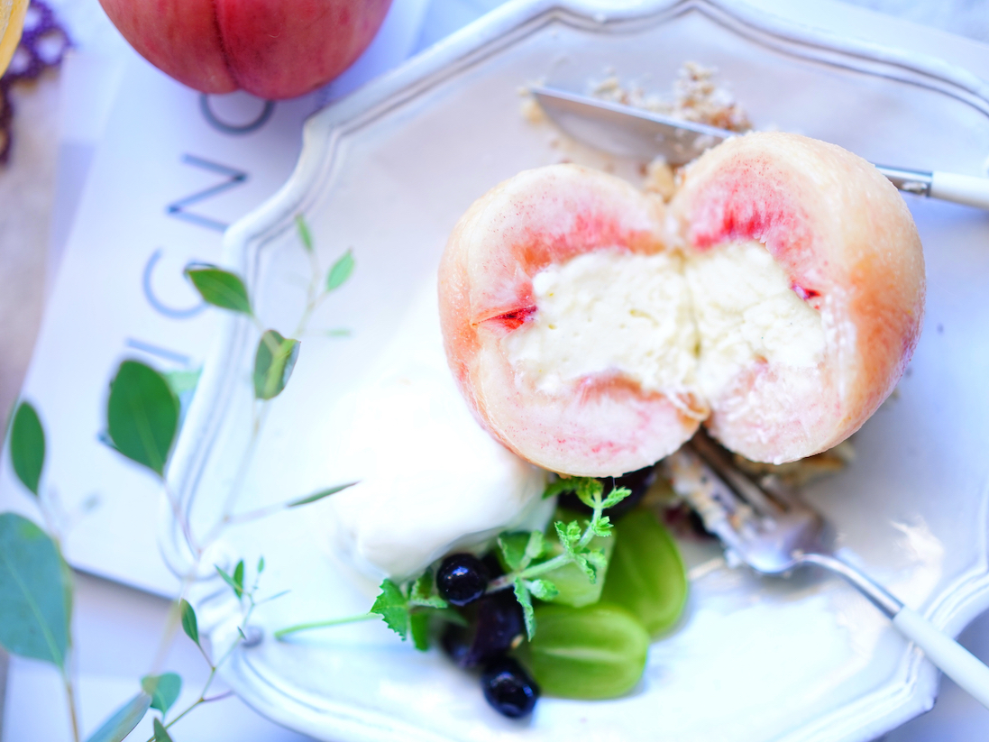 レンジで簡単!丸ごと桃のカスタードパイ【kyoko_plusのレシピ&テーブルコーデvol.47】
