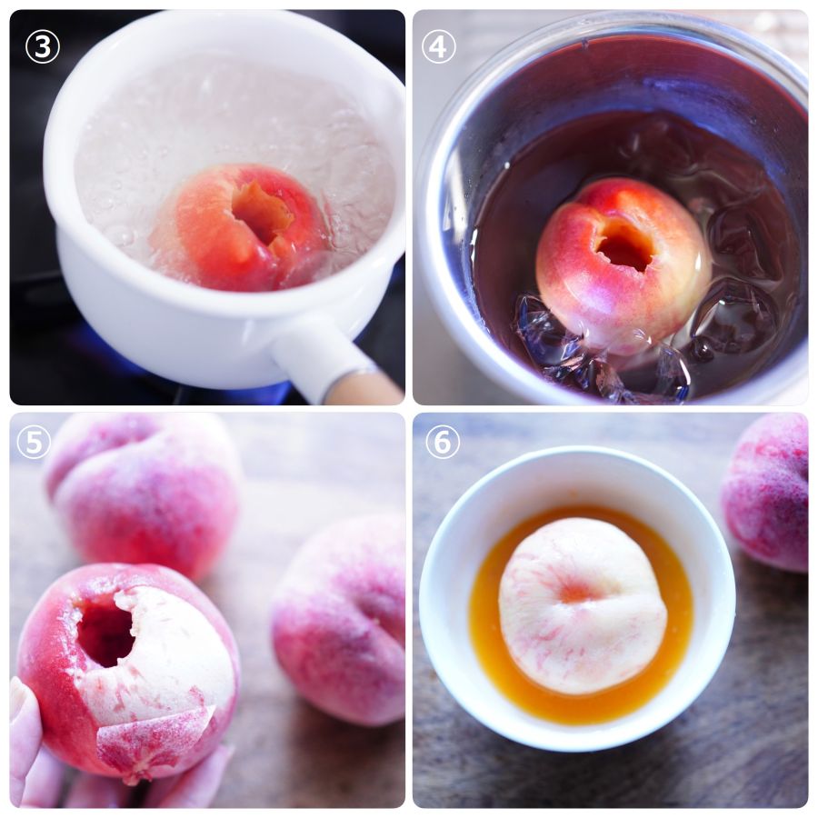 ③沸騰したたっぷりのお湯に、種を取った桃を入れ、10秒~20秒茹でます。