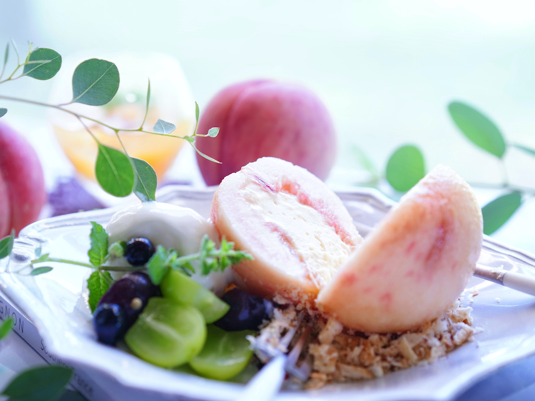 お盆が過ぎたとはいえ、まだまだ残暑が厳しい毎日。大好きな桃を毎日食べて、夏を乗り切る大作戦です。好きな果物に挙げる方が多い印象の桃ですが、皮むきが難しかったり、すぐ変色したりと、美しくお菓子に仕立てるのは難しい果物でもあります。今回のコラムは、桃のむき方や変色防止など、ちょっとしたコツをお伝えします。上手に下処理できた桃で、市販のお菓子を使って簡単に桃のパイに仕立てたので、よかったらぜひ作ってみてくださいね。