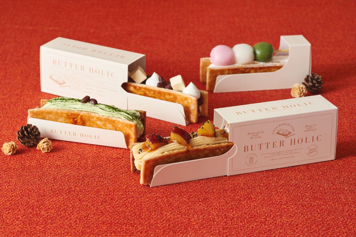 2022年6月にオープンした、日本初の(※)クラフトバターパイ専門店「BUTTER HOLIC(バターホリック)」。新しい概念のミルフィーユが話題を集めています。2022年9月1日(木)からは期間限定商品としてバターパイメニュー「大学いモンブラン」「あんバターカスタード」「鎌倉だんご」「抹茶あずき」の4種類を新発売。ここでしか味わえない新しいスイーツの魅力を堪能してください! (※) 自社調べ/日本国内のおける「クラフトバターパイ専門店」として/2022年8月時点