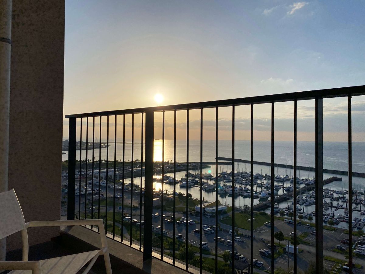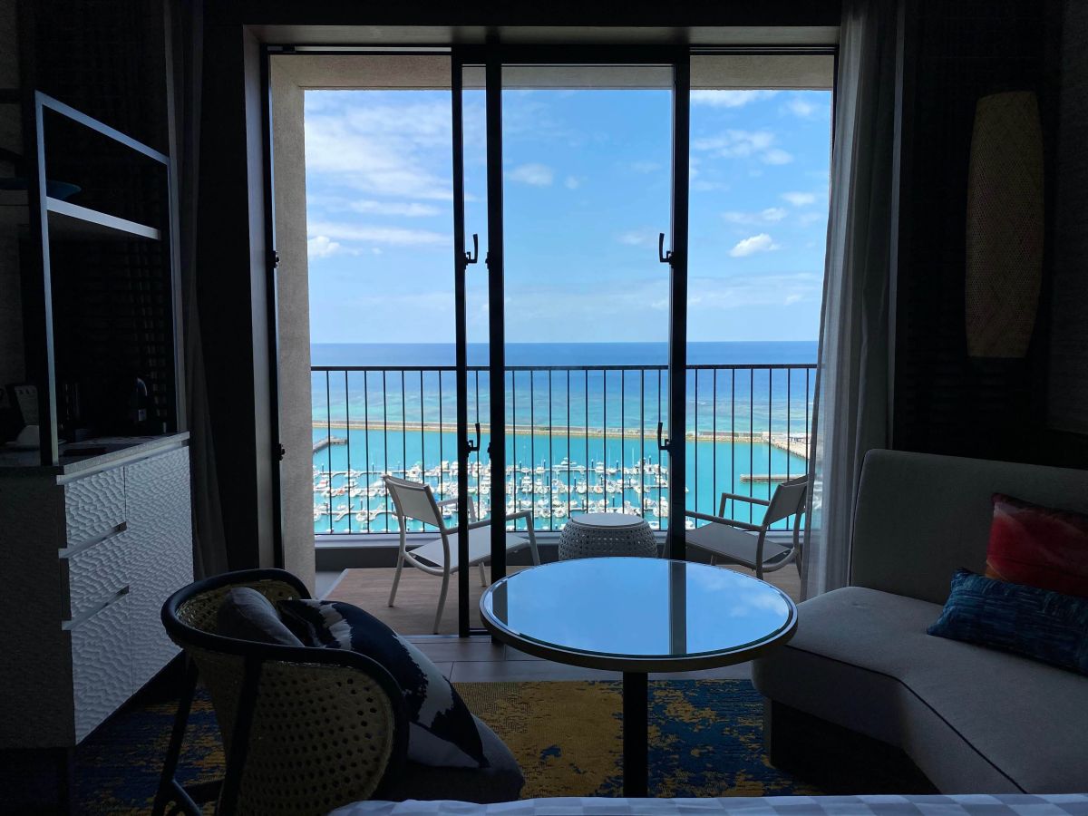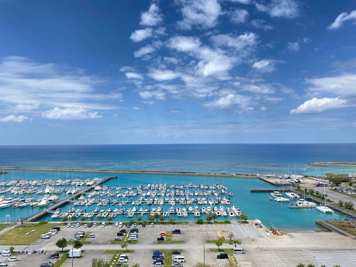 目の前には沖縄最大級のヨットハーバー「宜野湾港マリーナ」が広がっていて、まるで海外にいるかのような気分に。この写真、私がお部屋のテラスからスマホのノーマルカメラで撮影したのですが、それでもこの美しさ!綺麗すぎる!