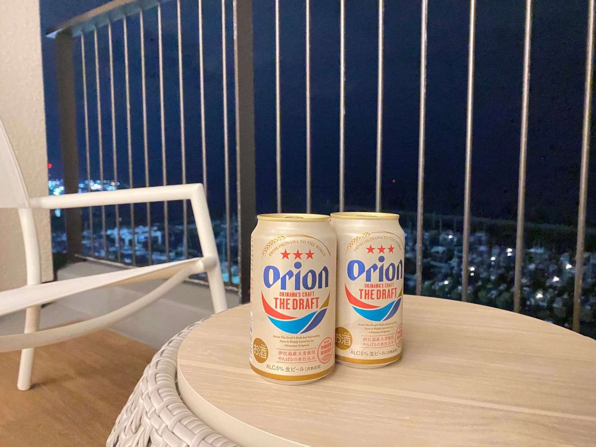 また、夜の海を眺めながらお酒も楽しむのもおすすめ(沖縄といえば、やっぱりオリオンビール!)。オーシャンビューかつテラスがあるからこそできる過ごし方、最高です!