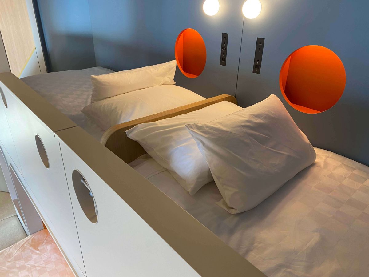 ファミリールームは5~9階で、ツインベッドのフロアの中2階に2段ベッドを備えた、子ども連れのファミリーに最適な客室。