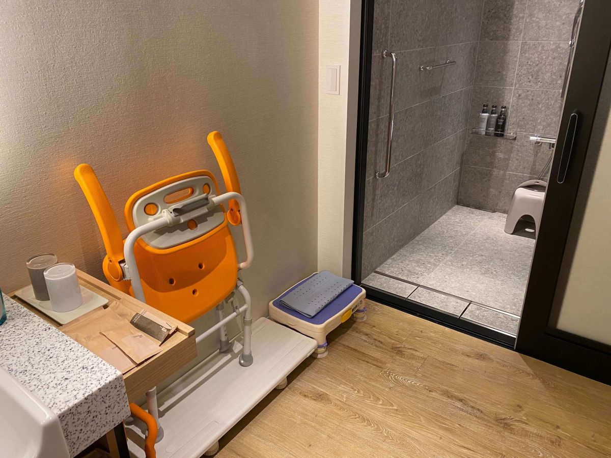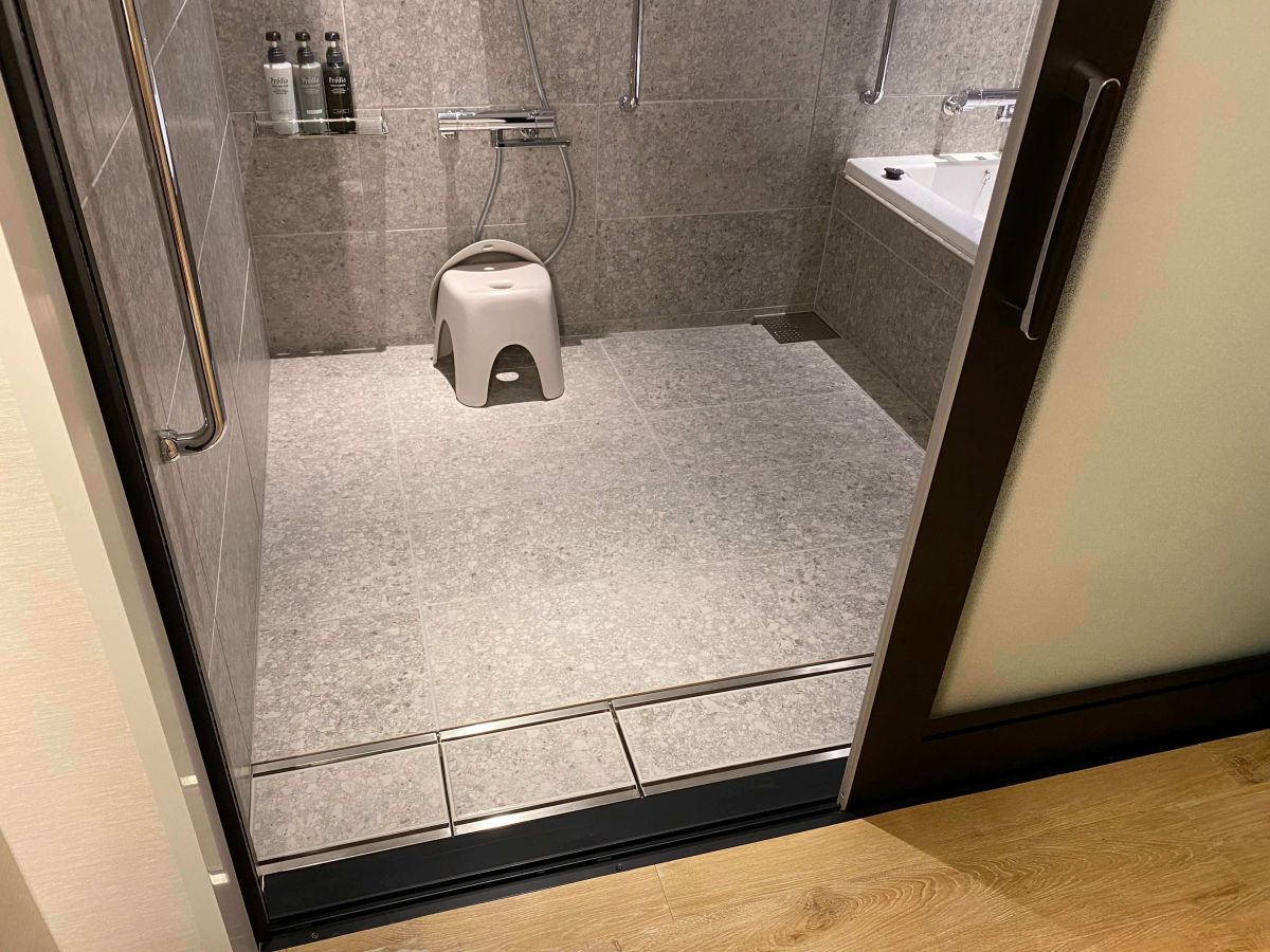 ユニバーサルツインルーム(40㎡)は、6~7階にあるお部屋。出入口がフラットになっていたりハンガーの位置が低めに設置されていたり、さまざまな方の利用を考慮されています。「せっかくだから不安はなるべく少なく、みんなで楽しみたい。」と思っても、そういったホテルを探すのはなかなか難しいところ。こんな風に細かなところまで配慮されているのはとってもありがたいですよね。