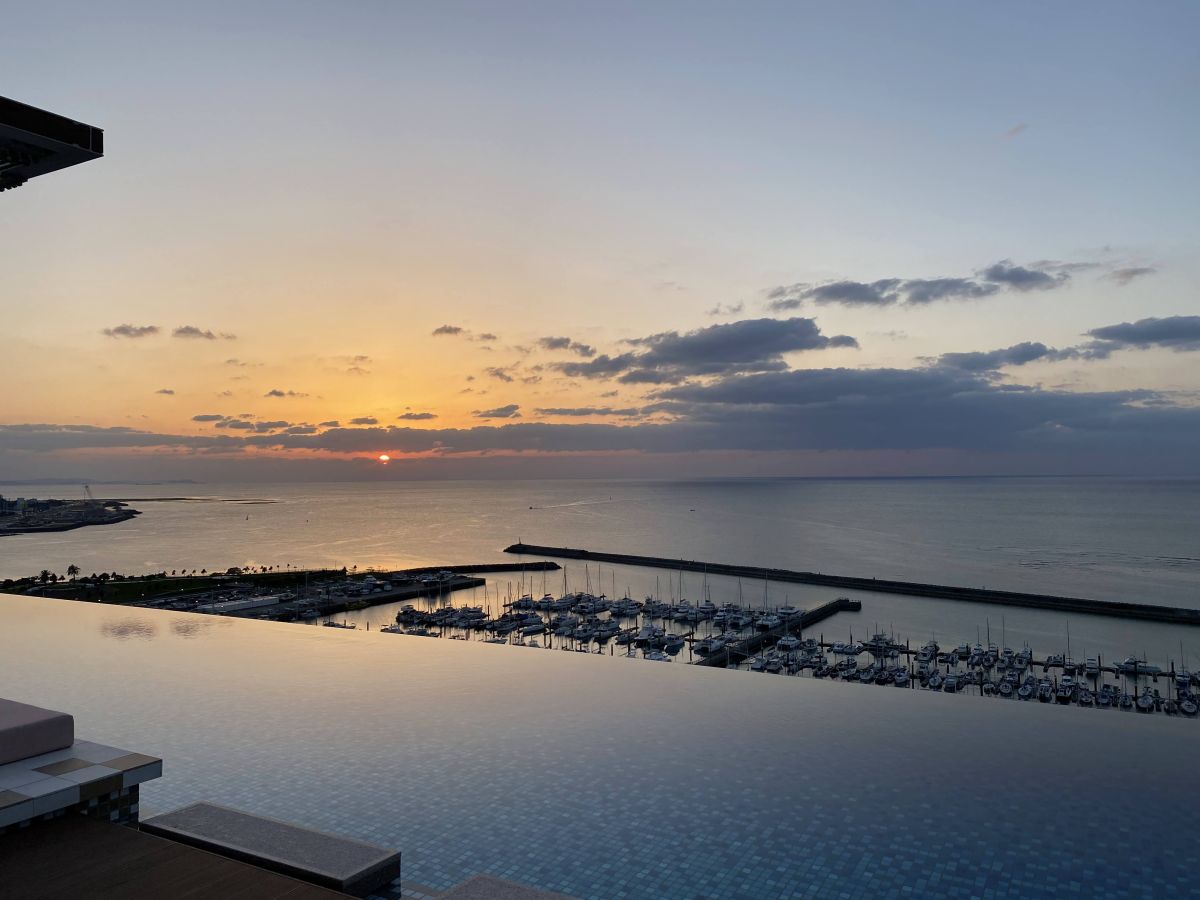 今回は、サンセットも14階のインフィニティプールにて堪能してきました。もう本当に綺麗で、ぜひとも味わっていただきたいです。(もちろん2階でも堪能できるので、沖縄の夕景はぜひインフィニティプールで…!)