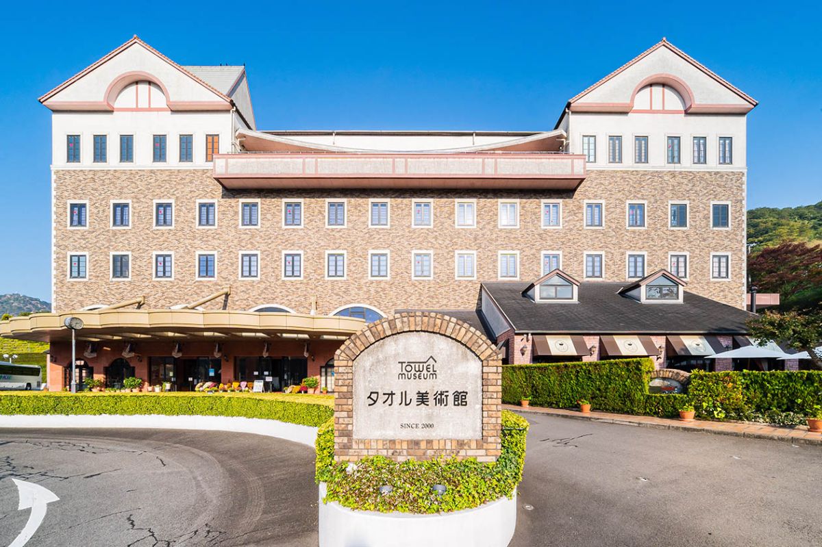 タオルの産地として知られる愛媛県今治市にある「タオル美術館」。自社ブランド製品の生産・販売など全国に約80店展開するタオル美術館グループが運営するミュージアムです。緑に包まれたクラシックな洋風の佇まいも素敵です。