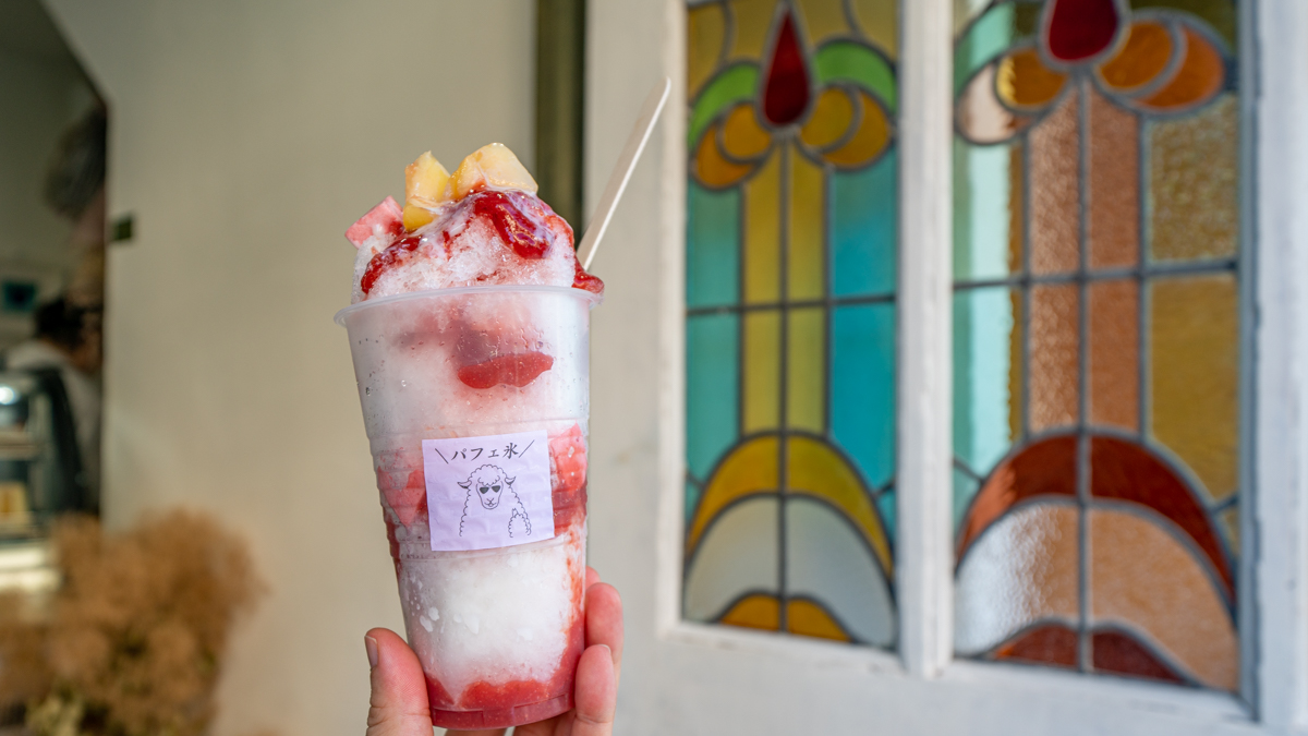 基本的にイートインはできませんが、9月末までは夏季限定の「ひつじ組のパフェ氷」850円が店頭で楽しめます。こちらはシロップ、果肉、ゼリー、泡、ソースといった5つのパーツを選べるセミオーダーの一杯。夏イチゴルバーブ、マンゴーキウイ、ラズベリー、パッションフルーツなど、さまざまな果実をお好みで組み合わせることができるんです。
