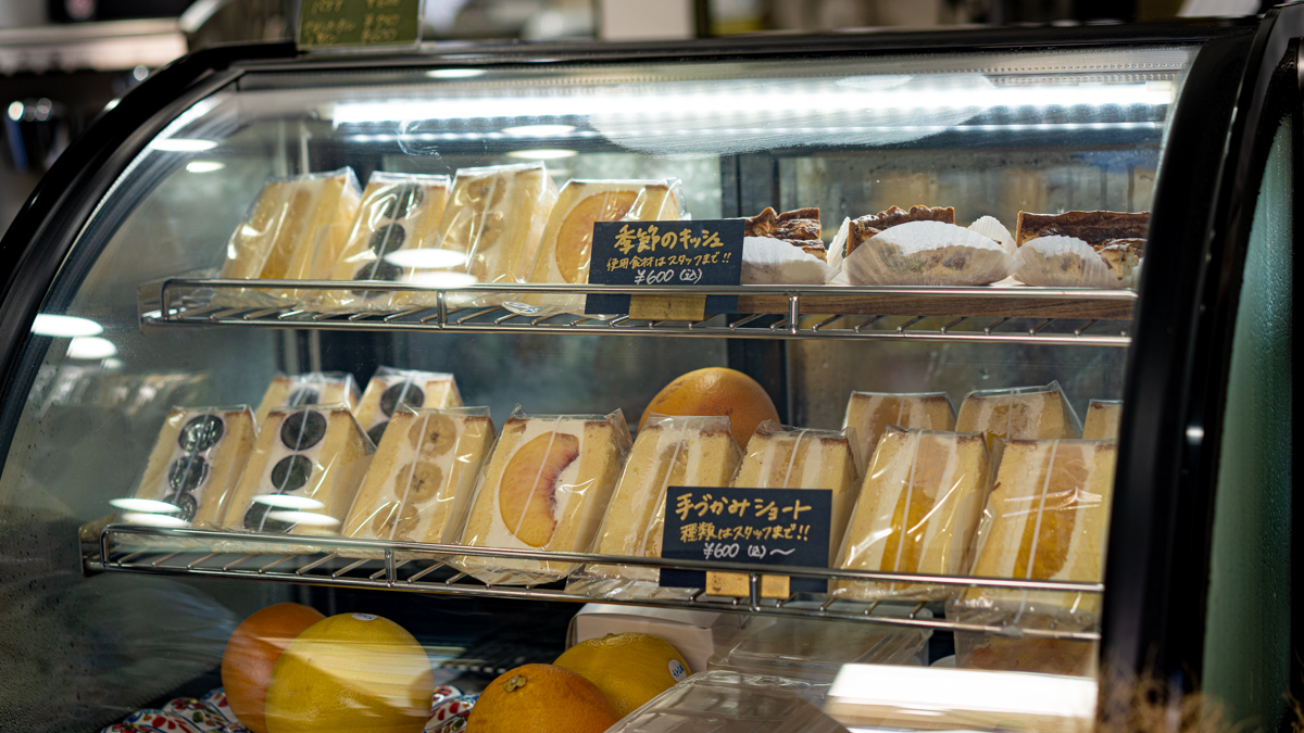 「残りもののケーキを手づかみで食べたら、いつもよりおいしく感じて」というエピソードから誕生した「手づかみショート」600円〜も名物のひとつ。ショートケーキ用スポンジに少しだけ蜂蜜を加えて、甘さ控えめの生クリームとともに旬の果実を挟み込んだオリジナルのスイーツです。