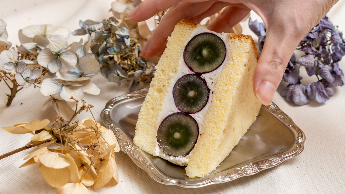 「ナガノパープル」750円をテイクアウトし、自宅で味わって驚いたのが果実そのものが際立っていたこと。少し甘さのあるスポンジ生地は非常になめらかで、糖分8%の生クリームとの境目が分からないくらい溶け合い、スーッと消え入るような食べ心地。一般的に糖度18〜21度ほどになるナガノパープルの甘さが強調されつつ、口のなかで爆発するようにみずみずしい果実感が広がります。秋にはイチジクや焼きイモを使用した「手づかみショート」が登場予定とのことですが、一体どのような味わいになるのでしょう!?