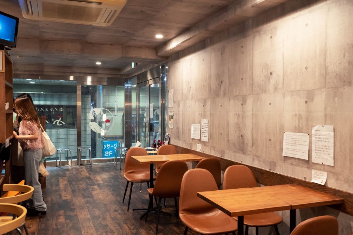 カウンター席とテーブル席が用意され、友人と一緒はもちろんひとりでも気兼ねなく入れる雰囲気です。落ち着いた照明でゆったりとくつろげるのもうれしいところ。