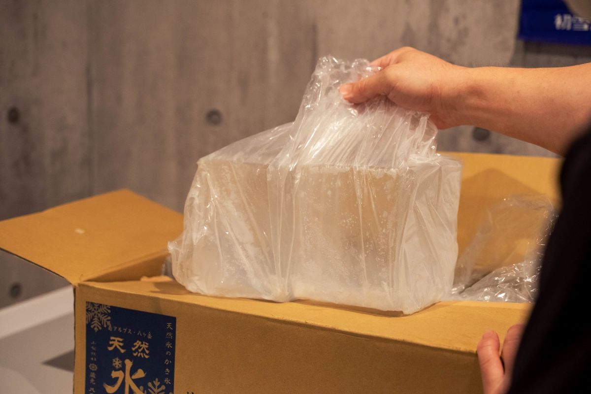 特徴は、なんといっても“南アルプス天然氷”を使ったかき氷であること。八ヶ岳南麓の湧水を、じっくり凍らせ、純度の高い氷に仕上げたあと氷室(ひむろ)と呼ばれる貯蔵庫に入れて保管していたものが、お店へと運ばれます。
