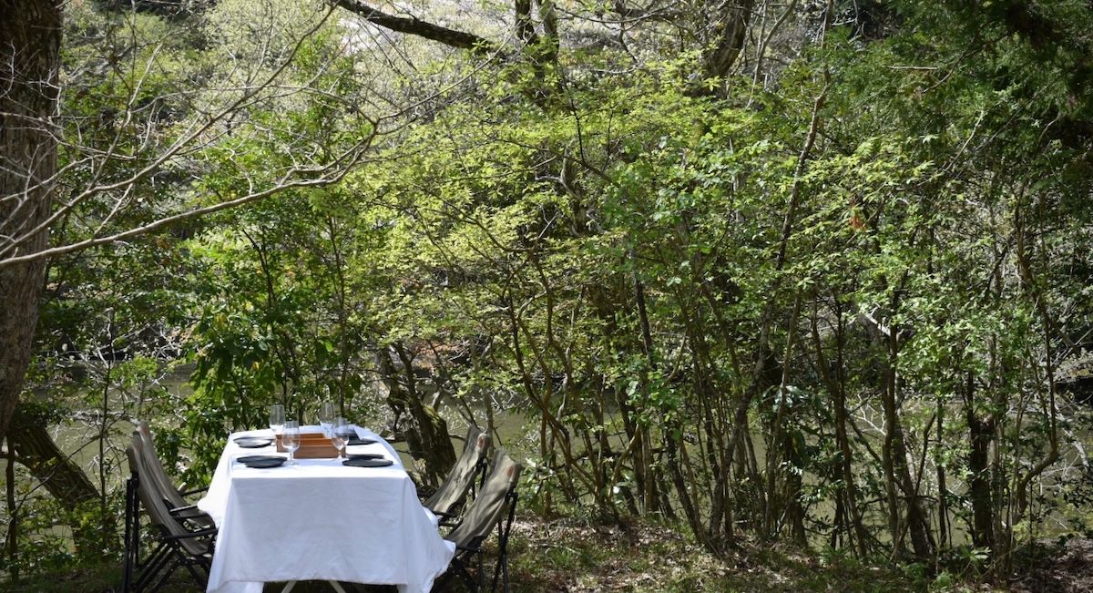 季節ごとに彩りを変える森を見渡すアウトドアダイニングでは、最高級のかずさ和牛や水揚げされたばかりの新鮮な魚介類、みずみずしい野菜や果物など、自然豊かな房総半島で採れる四季折々の旬の食材をふんだんに用いた料理が楽しめます。