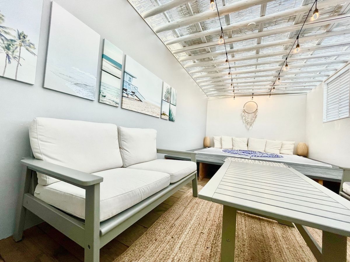 施設内770坪の白い砂浜に3棟だけ設置された、「ビーチハウス」は、西海岸高級リゾート、マリブのヴィラをイメージしたもの。マリブカラーで統一された家具とシーリングファンが、L.A気分を盛り上げてくれる、独立型コテージとなっています。非日常感たっぷりの空間は、写真映えも間違いなし!